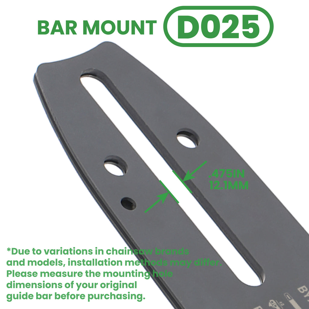 * The same chainsaw model may accommodate different bar and chain specifications. Confirm your saw's specs match these 4 dimensions: Bar Length, Pitch, Gauge & Drive Links.